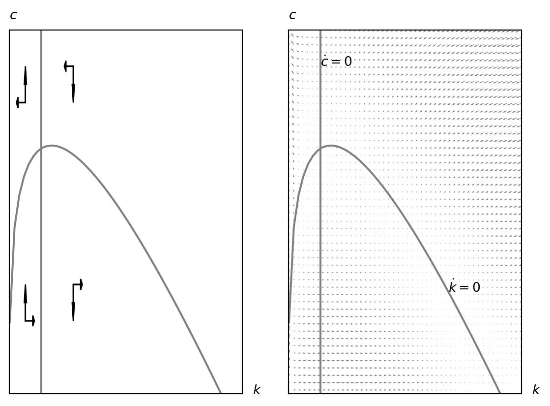 \[ \begin{aligned} \dot{k} =& 0 \\ \dot{c} =& 0 \end{aligned} \]